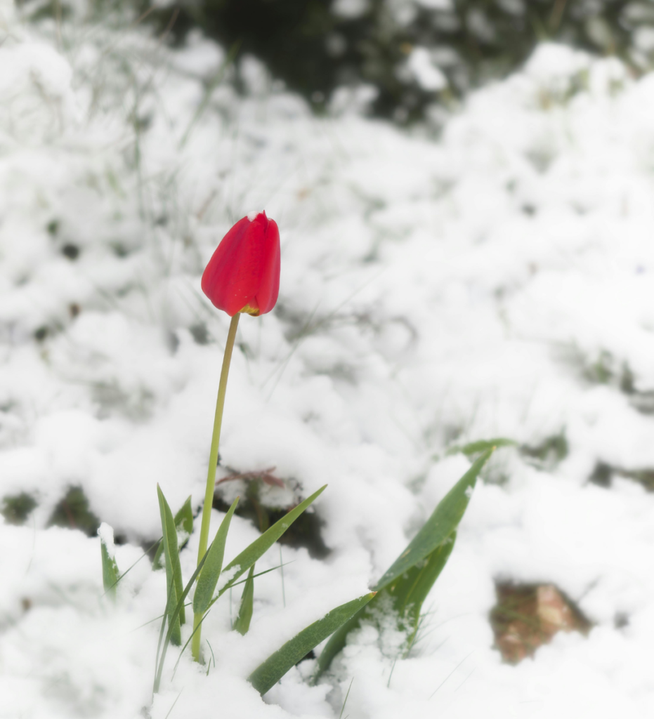 • de rode tulp die in het voorjaar met kracht door de aarde breekt